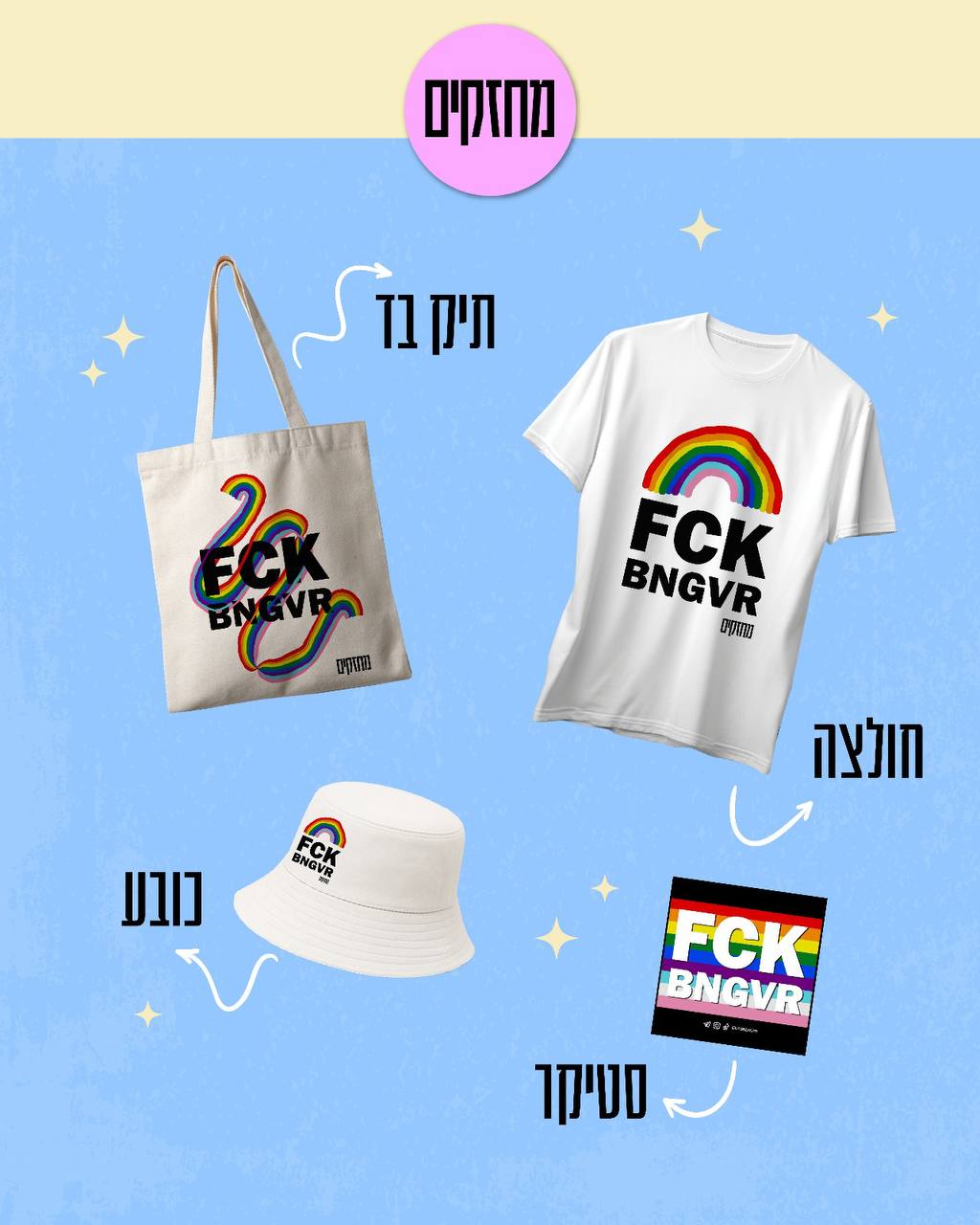 תרמו למחזקים תרומה חודשית, וקבלו מארז FCK BNGVR או FCK WAR שנוכל להיות בכל מקום ולהראות לבן גביר שאף אחד לא ישתיק אותנו.